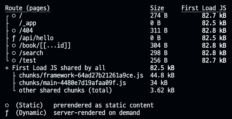 ํ๋ก๋์ ๋ชจ๋ : npm run build (build ๊ฒฐ๊ณผ์์ ๊ฐ ํ์ด์ง ๋ณ๋ก JS ๋ฒ๋ค์ ์ฉ๋์ ํ์ธํ ์ ์๋ค.)