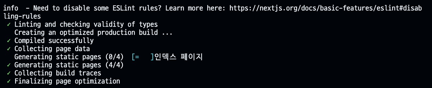 Generating static pages : SSG๋ก ๋์ํ๋๋ก ์ค์ ํ ํ์ด์ง๋ค์ด ์์ฑ๋๊ณ ์๋ค๋ ์๋ฏธ