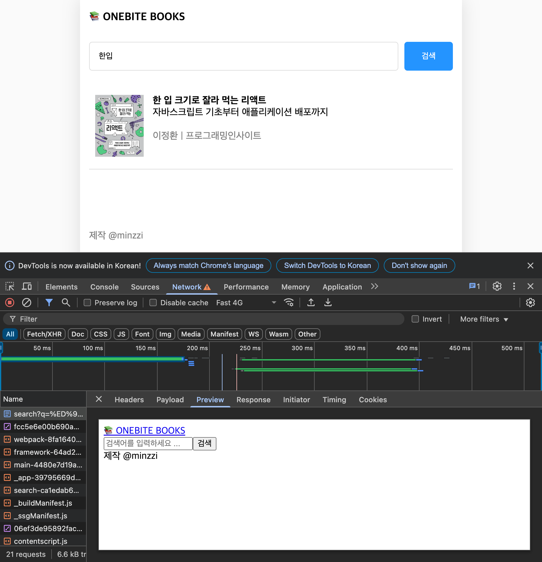 npm run start๋ก ํ์ธํด๋ณด๋ฉด index ํ์ด์ง๋ ์์ฃผ ๋น ๋ฅธ ์๋๋ก ๋ ๋๋ง ๋๋ ๊ฒ์ ํ์ธํ ์ ์๋ค.