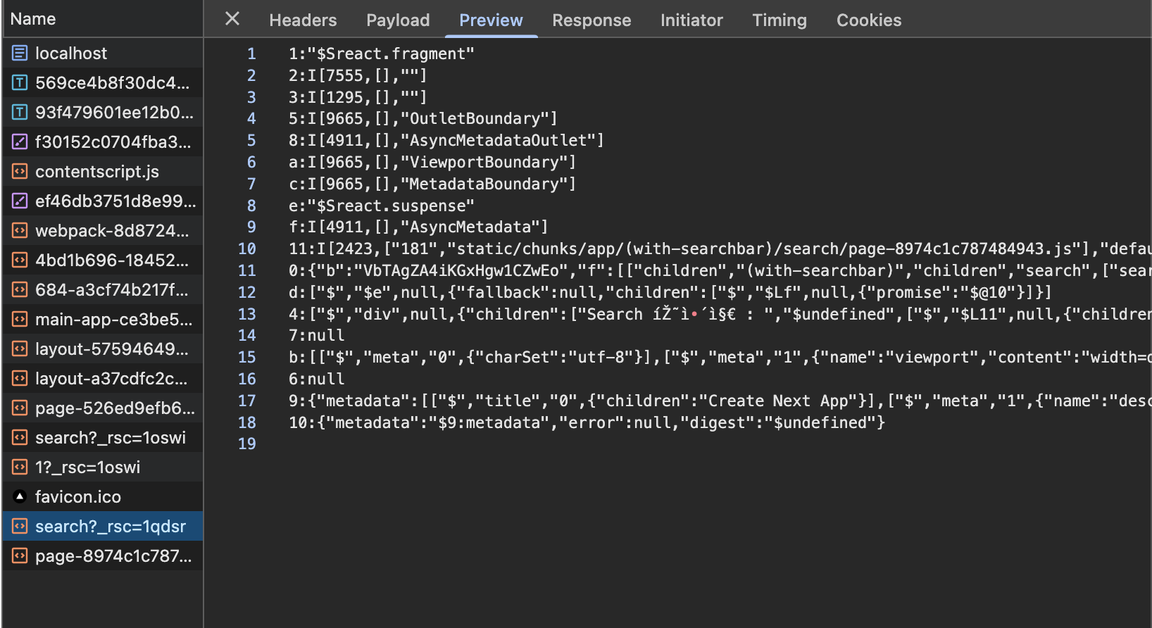 network ํญ์์ ํ์ธํด๋ณด๋ฉด ์๋์ ๊ฐ์ RSC Payload๋ฅผ ํ์ธํ ์ ์๋ค.