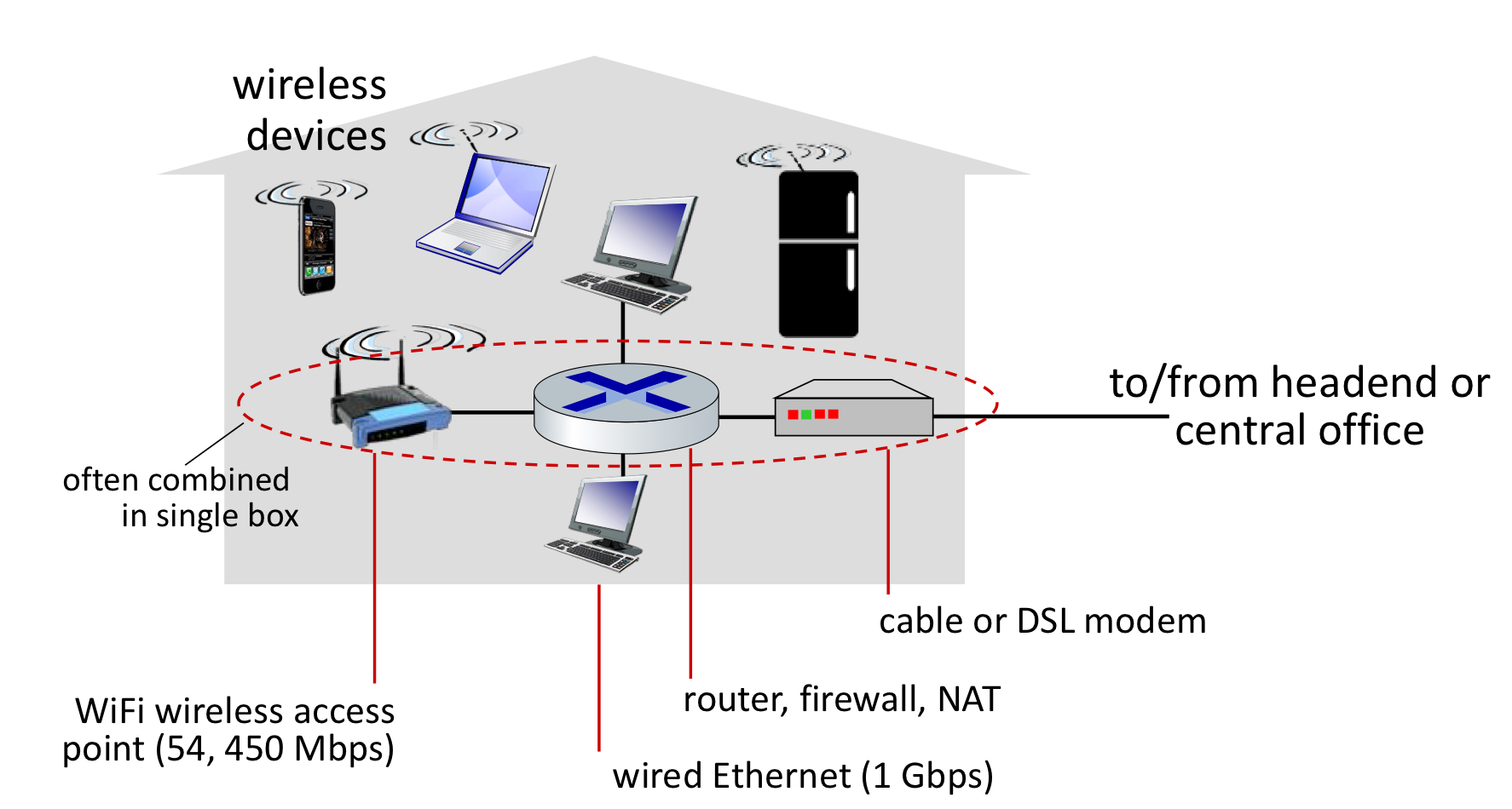 access network๊ฐ ์ฌ์ฉ๋๋ ํ๊ฒฝ์ ๋ฐ๋ผ ๊ฐ๊ฐ์ ํ๊ฒฝ์ด end system์ ์ธํฐ๋ท์ ์ฐ๊ฒฐ์ํค๋ ๋ฐฉ์์ด ๋๋๋๋ฐ, ๊ฐ์ ์์๋ DSL๊ณผ ์ผ์ด๋ธ, FTTH๋ฐฉ์์, ๊ธฐ์ ์์๋ ์ด๋๋ท๊ณผ ์์ดํ์ด๋ก ์ธํฐ๋ท์ ์ ์ํ๋ค.