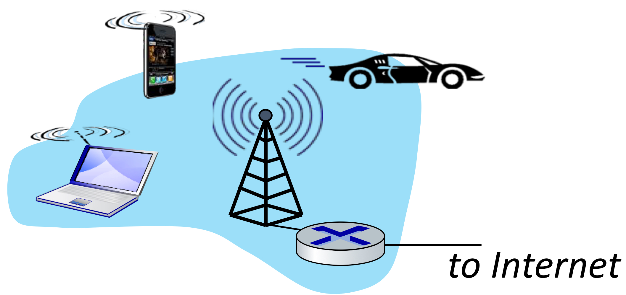 Shared wireless access network connects end system to router -> end system์ router๋ก ์ฐ๊ฒฐ์ํค๋ access network๋ฅผ wireless access network๋ผ๊ณ ํ๋ค. '๋ฌด์ '์ ์ด์ ์ ๋ง์ถ ๊ฒ.