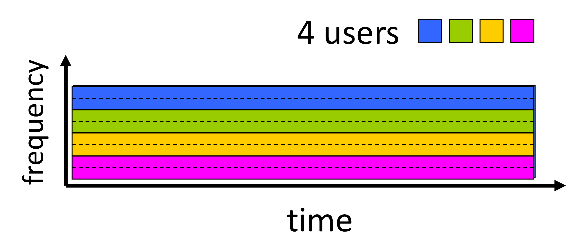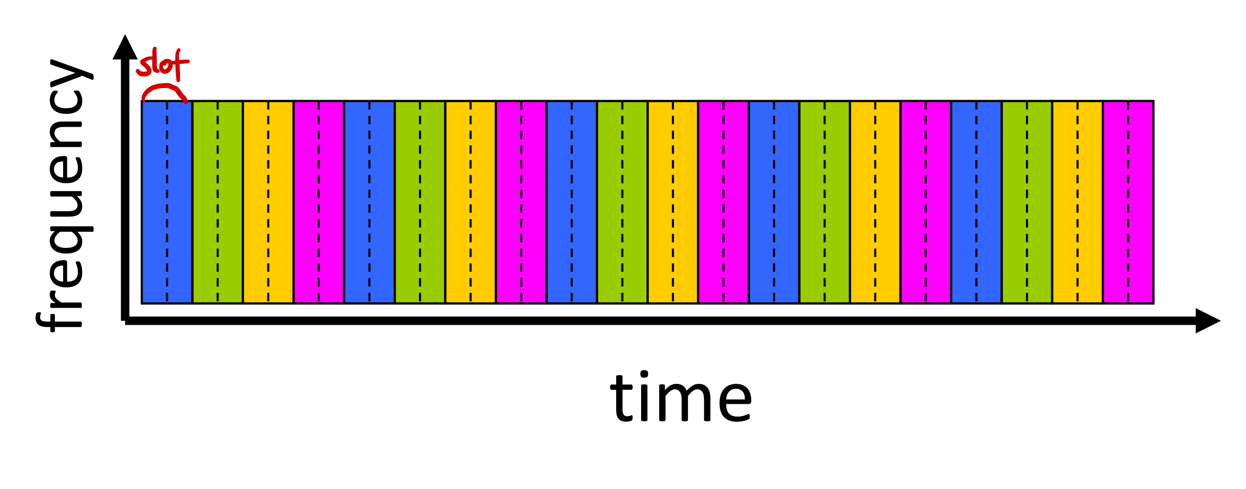 - ๊ฐ ํธ์ถ(call)์ ์ฃผ๊ธฐ์ (periodic) slot์ด ํ ๋น๋๊ธฐ ๋๋ฌธ์, ๋ ๋์ ์ฃผํ์ ๋์ญ์ ์ต๋ ์๋๋ก ์ ์กํ ์ ์์ง๋ง ํด๋น ์๊ฐ slot ๋์์๋ง ์ ์ก์ด ๊ฐ๋ฅํ๋ค.