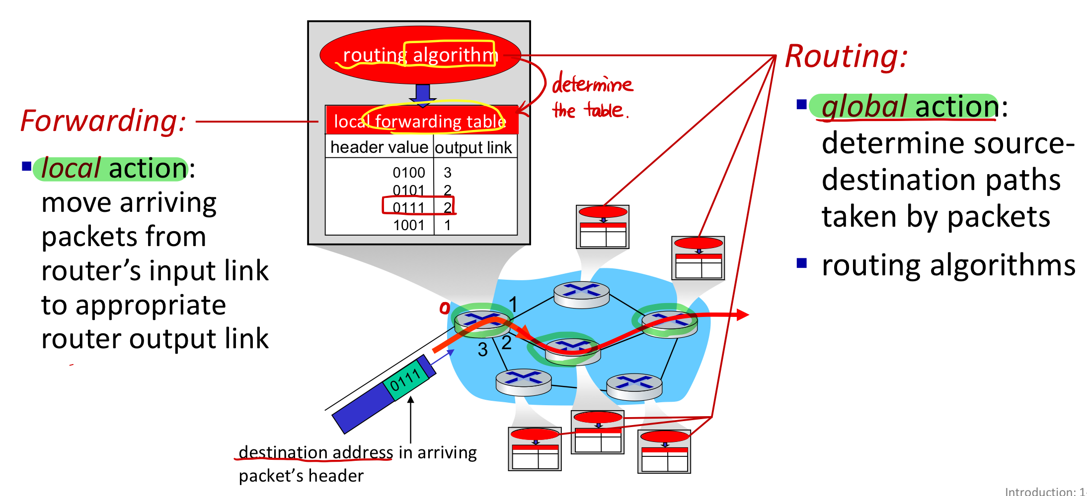 - routing algorithms๊ณผ ๋ผ์ฐํ protocol๋ก routing table์ ๋ง๋ ๋ค