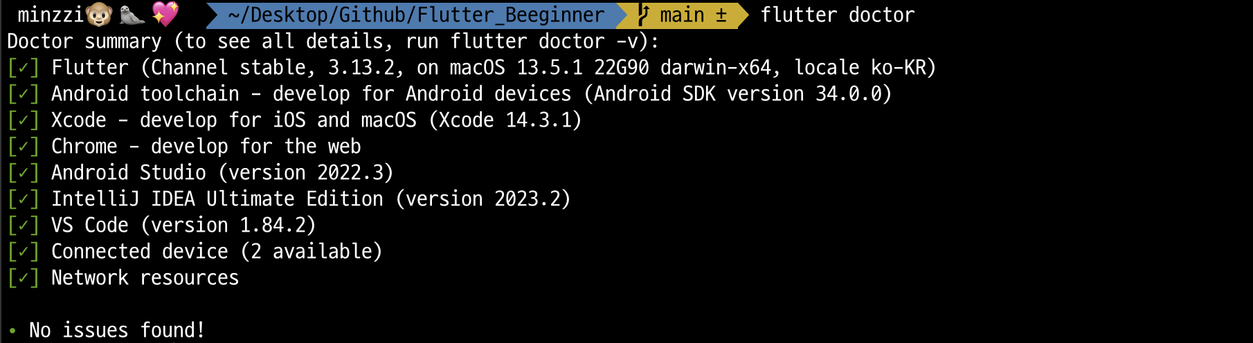 ์๋ก์ด ํ๋ก์ ํธ๋ฅผ ๋ง๋๋ ค๊ณ flutter doctor๋ฅผ ์คํํ๋๋ฐ ์๋ ์ค๋ฅ๊ฐ ๋ด๋ค.