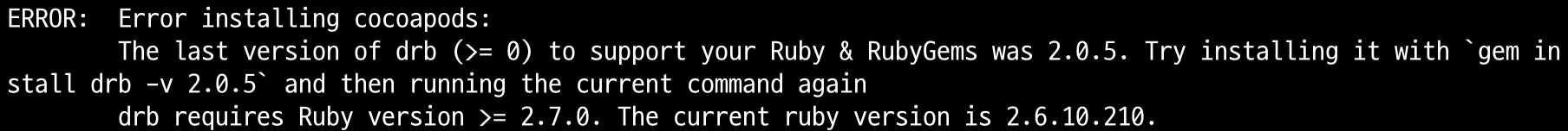 'gem install drb -v 2.0.5'๋ฅผ ์ค์นํ๋ผ๊ณ ๋์ด ์์ด์ ๊ทธ๋ ๊ฒ ํด์คฌ๋ค.