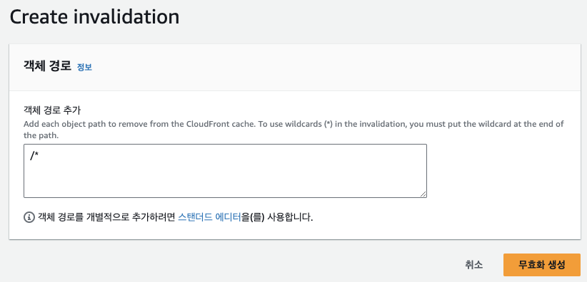CloudFront > ๋ฐฐํฌ๋ cloudfront ์ ํ > ๋ฌดํจํ > ๋ฌดํจํ ์์ฑ