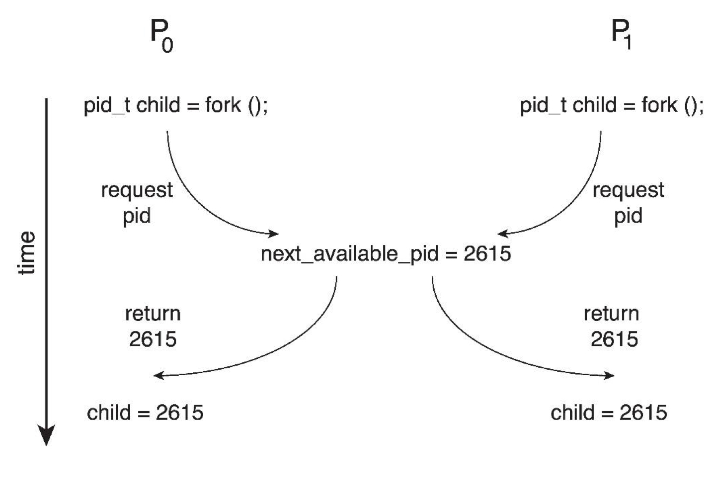 - ๋ค์์ผ๋ก ์ด์ฉ๊ฐ๋ฅํ process์ id(pid)๋ฅผ ๋ํ๋ด๋ 'next_available_pid' ๋ณ์์์ race condition์ด ์ผ์ด๋๋ค.