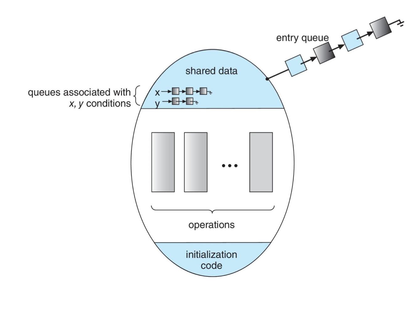 - If several processes queued on conditio variable x, and x.signal() is executed, which process should be resumed?(์กฐ๊ฑด ๋ณ์ x์ ์ฌ๋ฌ ํ๋ก์ธ์ค๊ฐ ์ผ์ ์ค์ง ๋์ด ์์ ๋, ์ด๋ ํ ํ๋ก์ธ์ค๋ฅผ ์ํ ์ฌ๊ฐ์ํฌ ๊ฒ์ธ๊ฐ?)